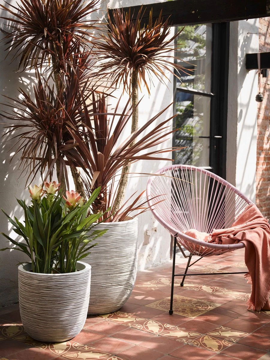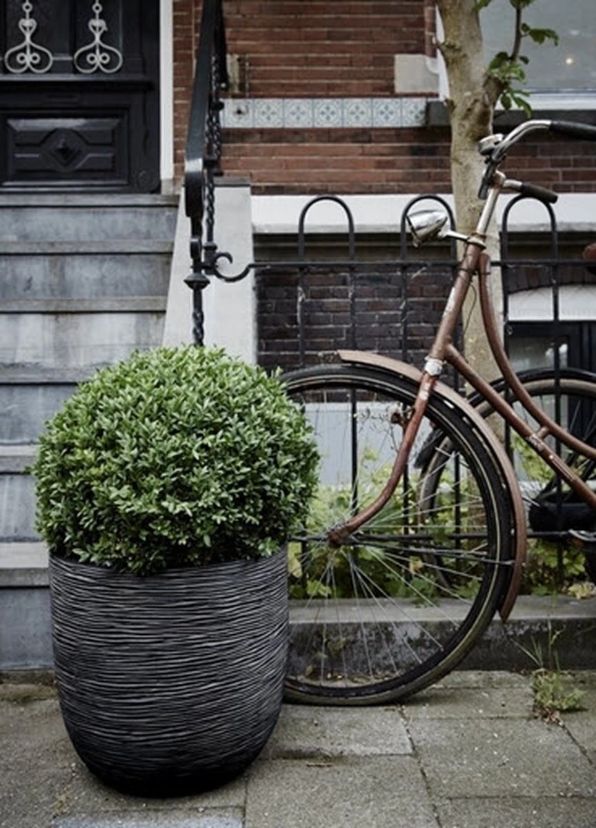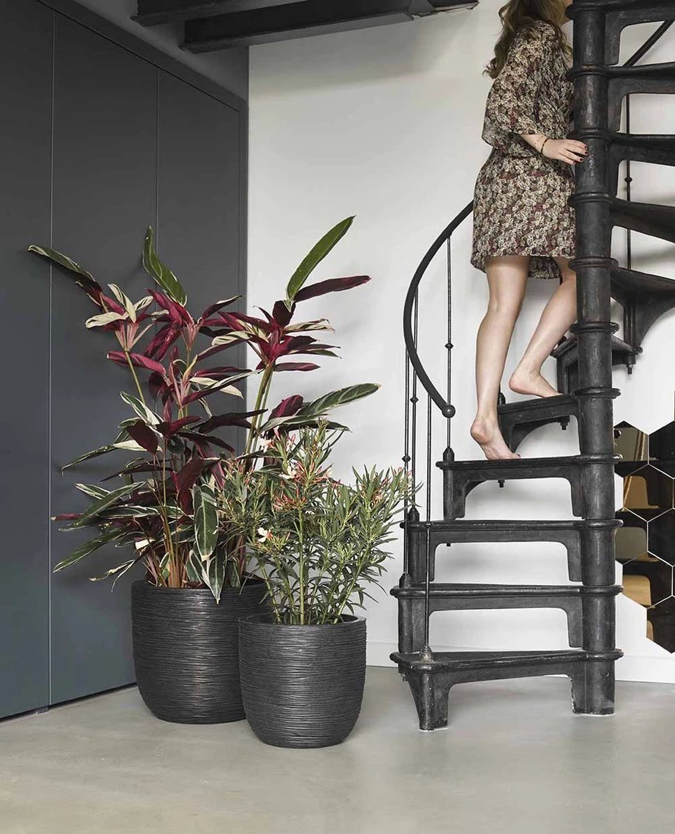 De Rib-textuur geeft deze pot een natuurlijke look. Deze textuur is geïnspireerd op gevlochten riet en de dunne lijnen daarvan. De smalle, dansende lijnen zorgen naast een natuurlijke look ook voor een speelse touch aan deze potten. De Nature Rib NL is verkrijgbaar in de kleuren zwart, ivoor, antraciet en donkerbruin. Deze verschillende kleuren geven iedere bloempot een eigen karakter.