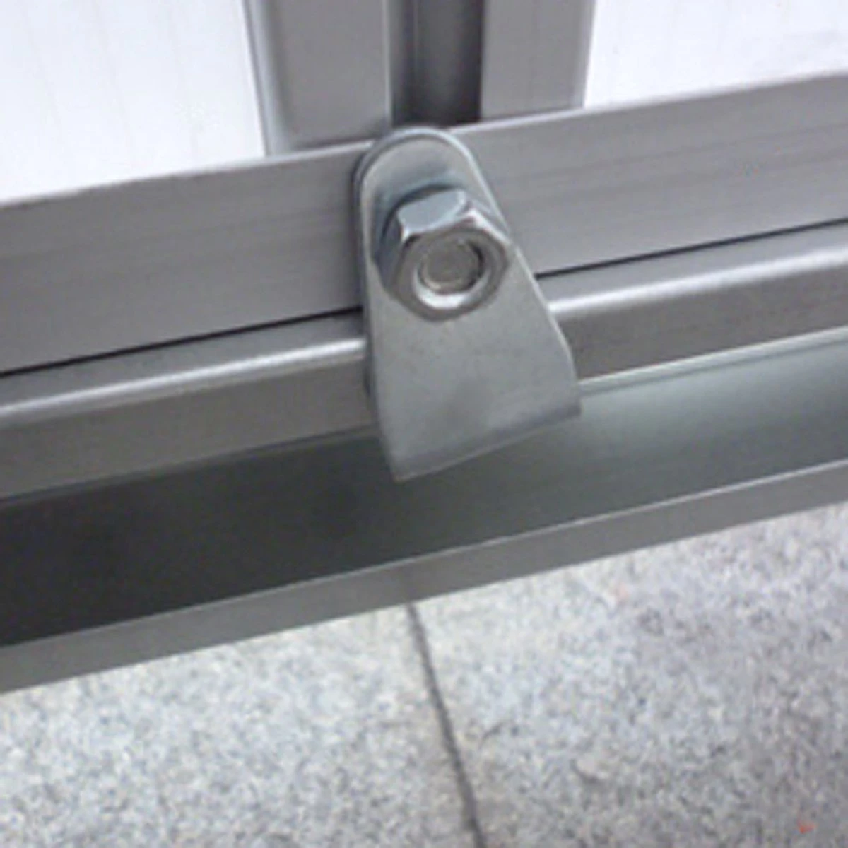 Montage: Het frame is aan de grond bevestigd met metalen haken. De kas en het frame zijn stevig verbonden met hoeken en schroeven.