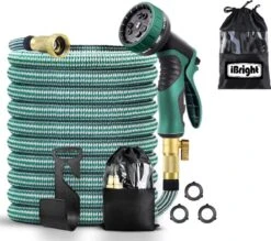 De tuinslang van iBright is gemaakt van de beste materialen en is zeer flexibel. Door het gebruik van deze unieke tuinslag zal je merken dat het besproeien van jouw tuin en gras, het grondig wassen van de auto en het wassen van jouw huisdier makkelijker gaat dan ooit te voren. De tuinslang buigt niet, wat het gebruik aangenaam maakt. De basisversie is 15 m lang en strekt zich uit tot 45 m.