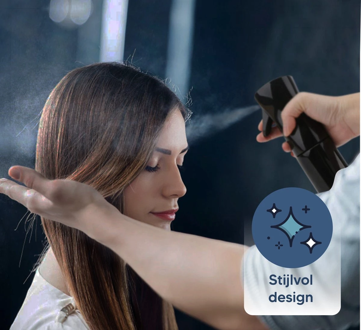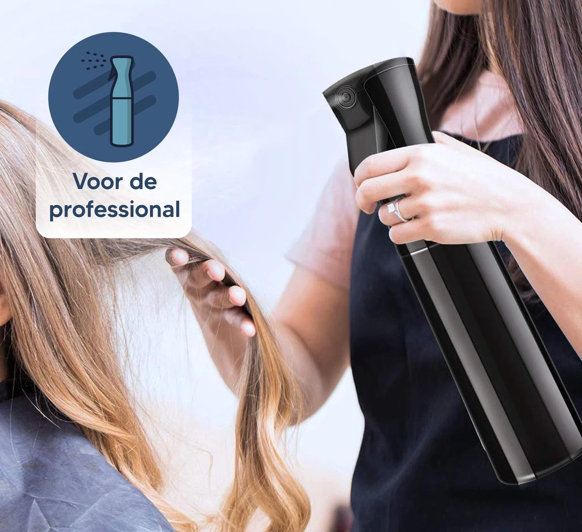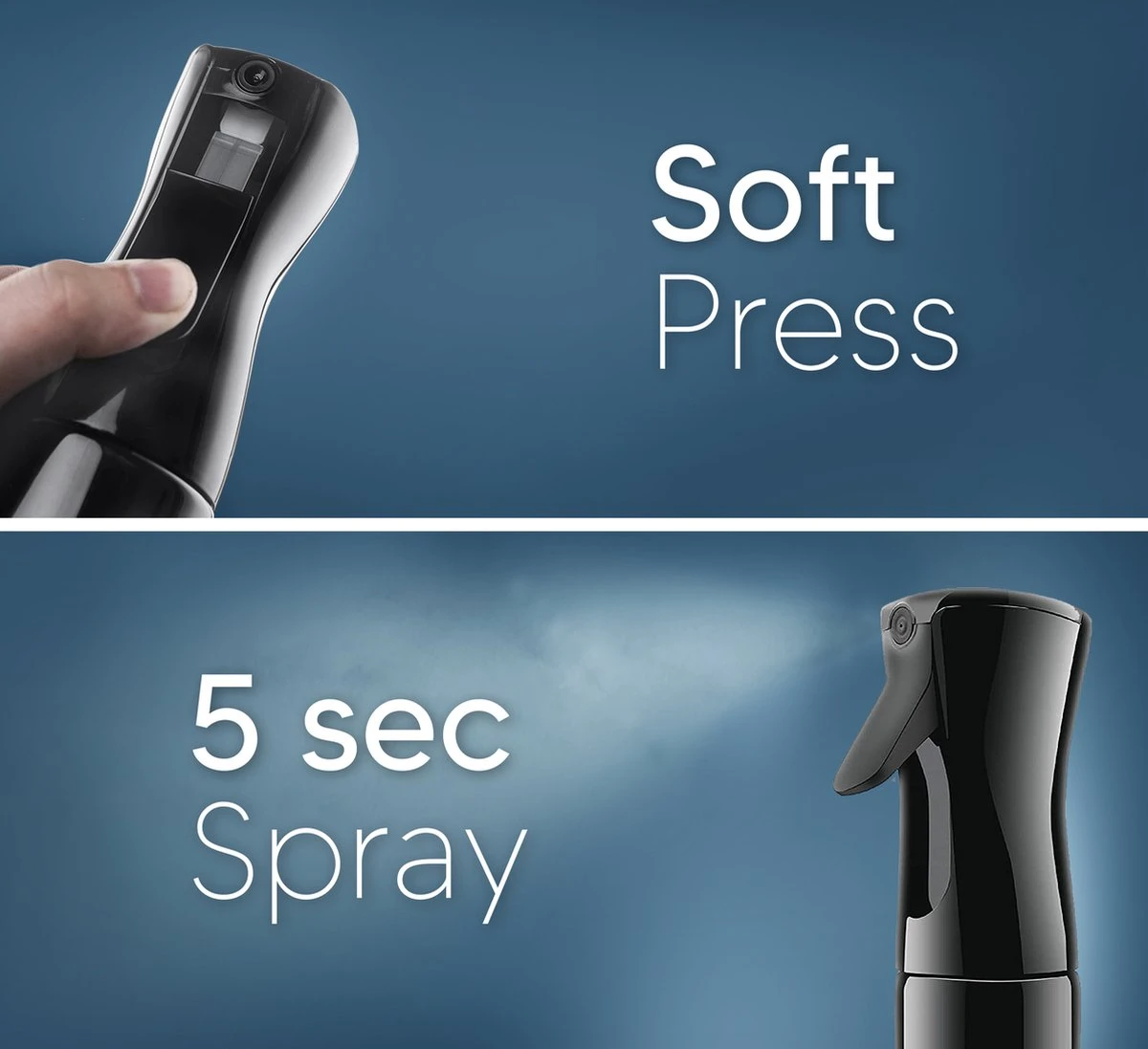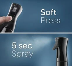 • Lange spray – De 5 seconde lange spray creëert een constante en fijne mist in een perfecte hoeveelheid water om het haar te verzadigen.