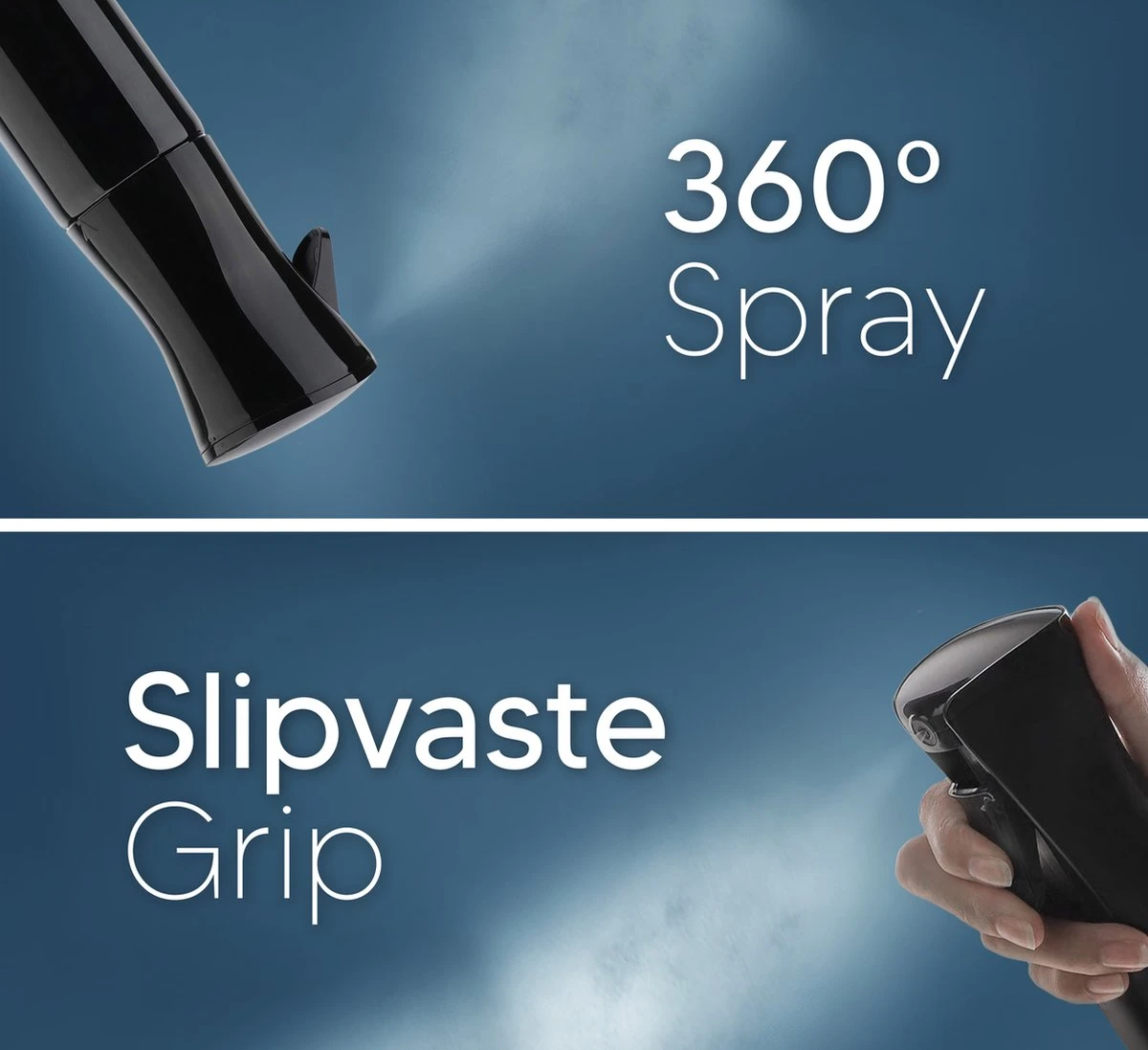 • 360° spray – De innovatie techniek in de spray maakt het mogelijk onderste boven te sprayen. Zo kun jij vanuit alle hoeken de spray gebruiken.