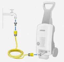 De slangset, geschikt voor alle gangbare (Kärcher) tuinproducten kan worden gebruikt als aanvoerslang voor een hogedrukreiniger en voor het sproeien van de tuin. De set bestaat uit 10 meter ftalaatvrije (