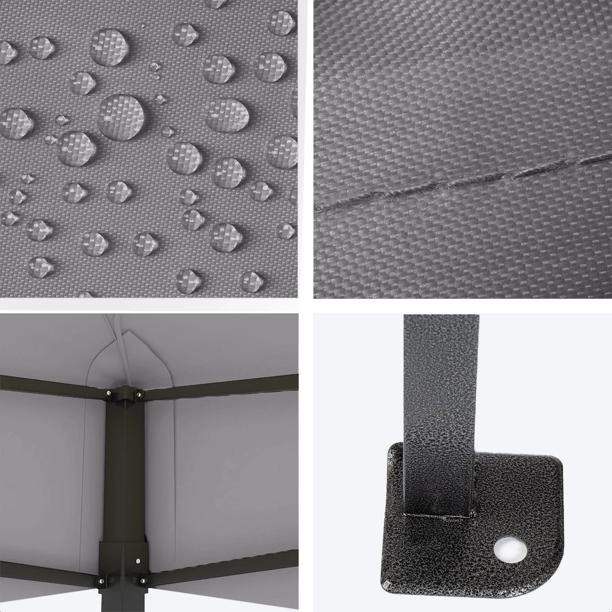 De constructie van de partytent is zeer stabiel en robuust. Alle hoekpunten zijn verstevigd met een extra laagje stof. Het doek van de partytent is gemaakt van dik polyester met nylon. Het robuuste stalen frame in combinatie met de sterke harmonica constructie zorgt ervoor dat deze partytent tegen een stootje kan!