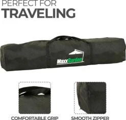 De easy up tent wordt geleverd in een handige draagtas inclusief scheerlijnen en tentharingen voor extra stabiliteit.