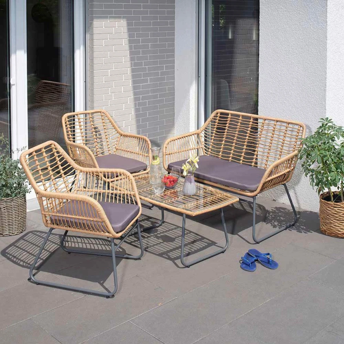 De tuinset Kilsund is een 4-delige tuinset gemaakt van staal, rotan, polyester en glas. De lounge set bestaat uit een zitbank, twee fauteuils en een salontafel.