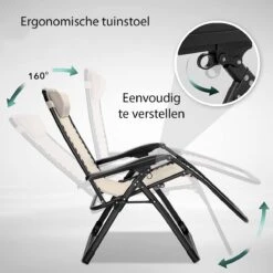 Deze stoel heef een gepoedercoat metalen frame dat weerbestendig is. De zitting van de stoel is van duurzaam en ademend polyester. Deze stof zorgt ervoor dat je het in de zomer niet te heet krijgt in de stoel. Het zachte hoofdkussen is in hoogte verstelbaar en ook afneembaar. De armleuningen zijn ergonomisch gevormd. De stoel kan traploos versteld worden zodat je altijd de meest comfortable houding kunt vinden.