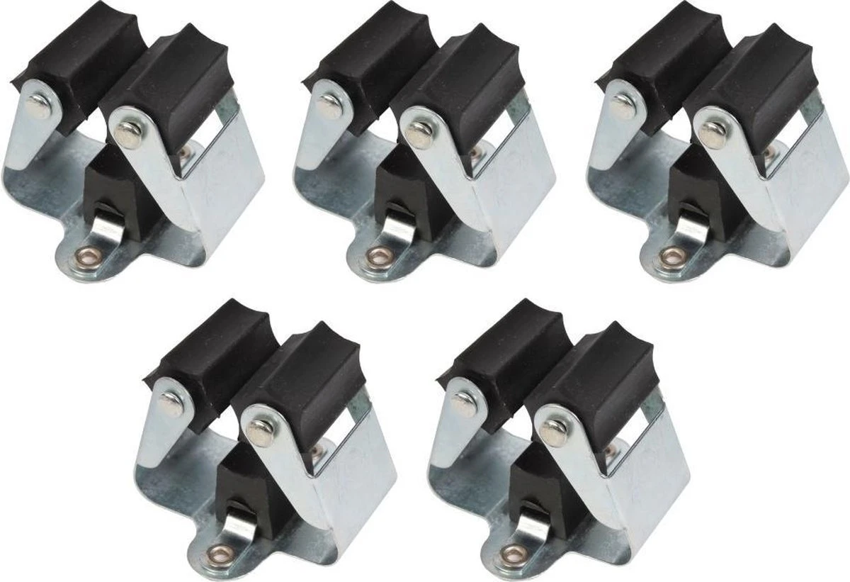 De houders worden geleverd inclusief schroeven om de gereedschapsklemmen aan de muur of wand te bevestigen. Wanneer de houder stevig op z’n plek hangt, zorg je dat het gesteelde gereedschap tussen de twee rubberen draaidelen wordt geklikt. Je bezems, harken en batsen zitten stevig en veilig vast.