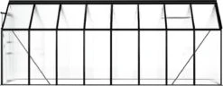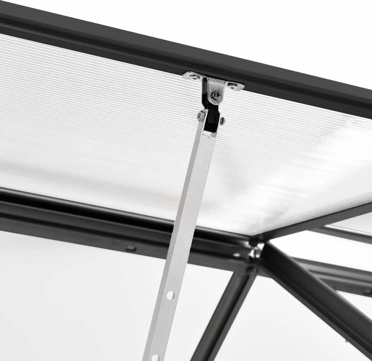 Deze tuinkas is gemaakt van polycarbonaat panelen waardoor hij uv-bestendig en thermisch isolerend is. De kweekkas heeft een stevige en onderhoudsvrije constructie van aluminium voor extra stabiliteit. Het gotensysteem zorgt voor effectieve waterafvoer en het ventilatiegat in het dak zorgt voor optimale ventilatie op hete dagen.